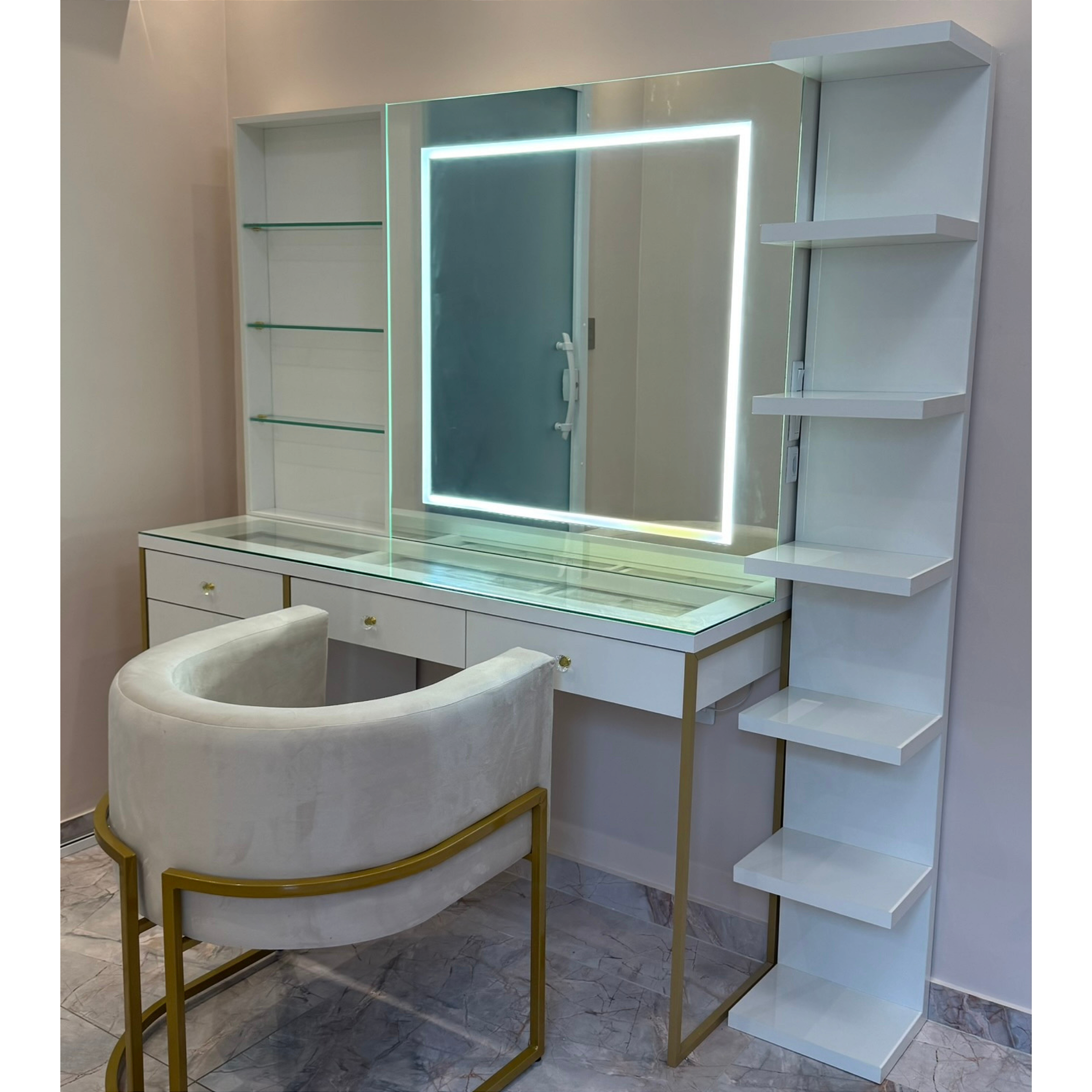 Elegante, imponente e atemporal, a Penteadeira Chloe traduz o equilíbrio perfeito entre sofisticação e funcionalidade. Com acabamento refinado e iluminação estratégica, ela transforma qualquer ambiente em um verdadeiro espaço de beleza e autocuidado.